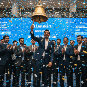 Lenskart Solutions Ltd’s highly anticipated IPO made a subdued entry on November 10, 2025, listing at a 3% discount to its issue price despite massive subscription demand. The eyewear giant, backed by founder Peyush Bansal, opened at ₹395 on the NSE and ₹390 on the BSE against the ₹402 upper band, reflecting investor caution in a volatile market. This **Lenskart IPO debut** story highlights the disconnect between pre-listing buzz and reality, with shares dipping up to 10% early before recovering 5-6% intraday.